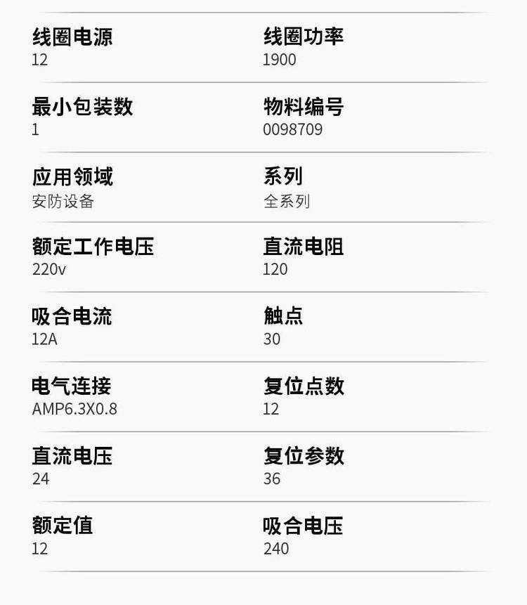 | 额定值12 | 吸合电压240 |