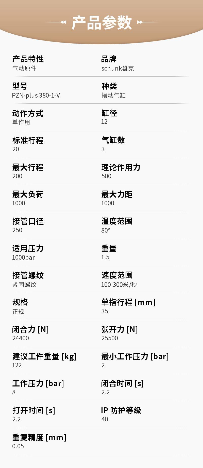 | 产品特性气动原件 | 品牌schunk雄克 |