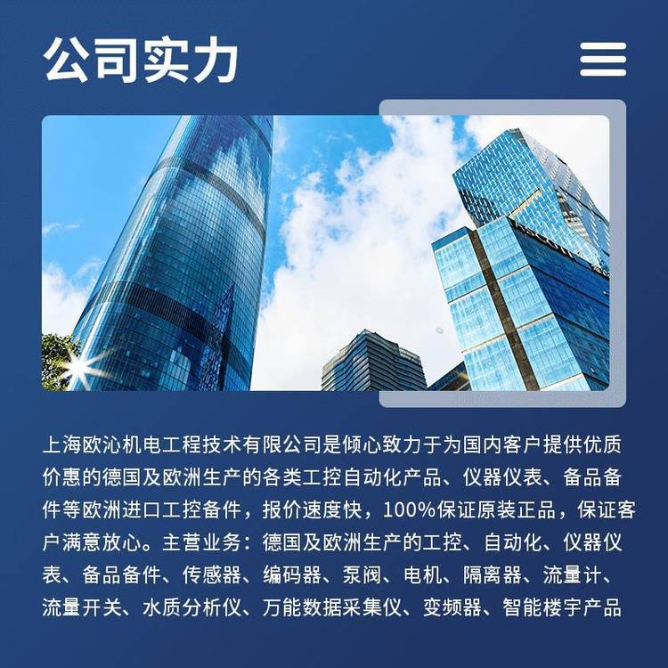 同时,我们也发挥供货渠道优势,直销欧美进口传感器,编码器,变频器,电机,泵阀,流量计,执行器,连接器,PLC等进口工控自动化产品。