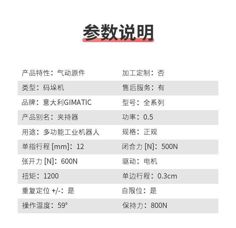| 产品特性气动原件 | 单指行程[mm]12 |