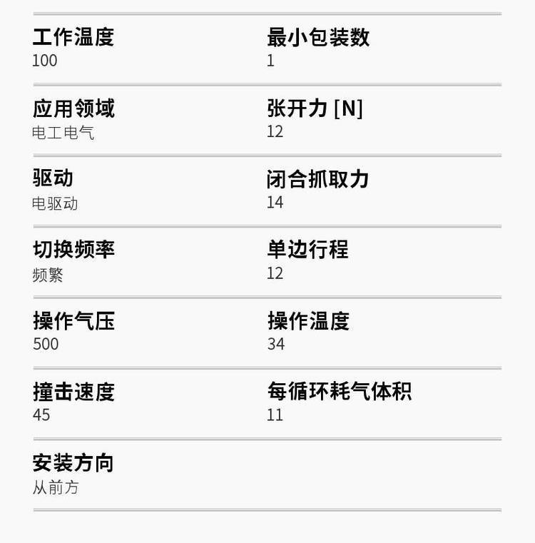 | 张开力[N]12 | 驱动电驱动 |